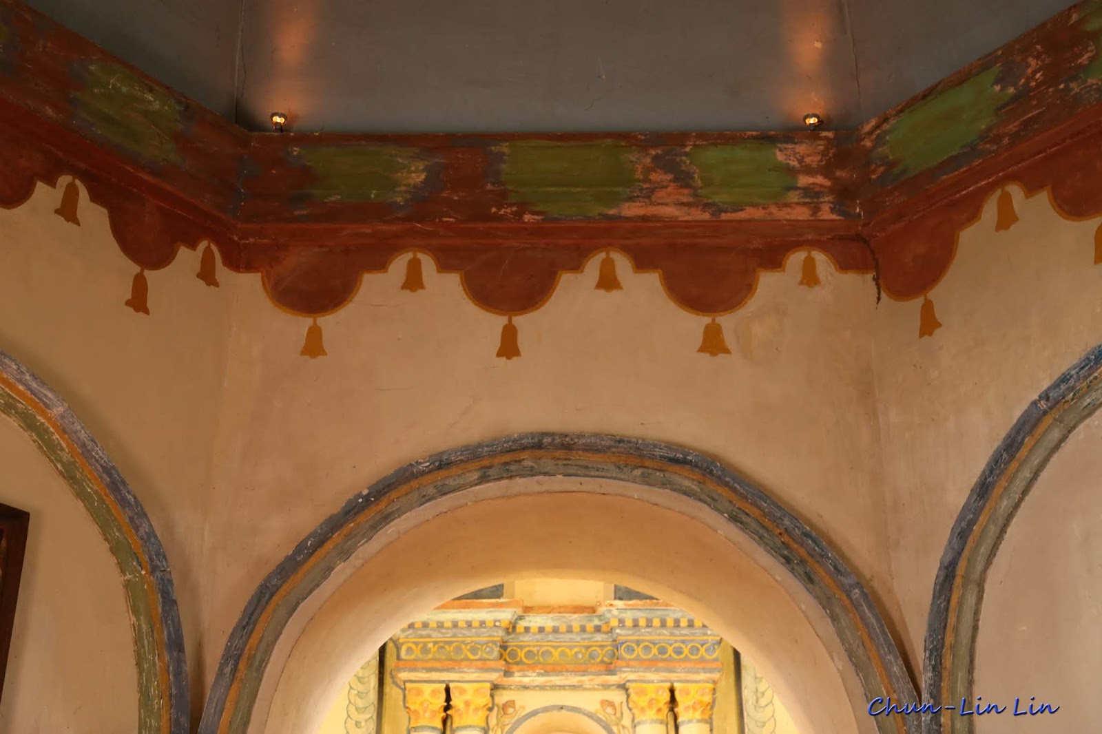 在神龕前面上方的八角形圓頂中心有盞燈,在早期還沒有旅館的時候,在晚上都會打開燈,讓旅人知道這裡可以住宿。